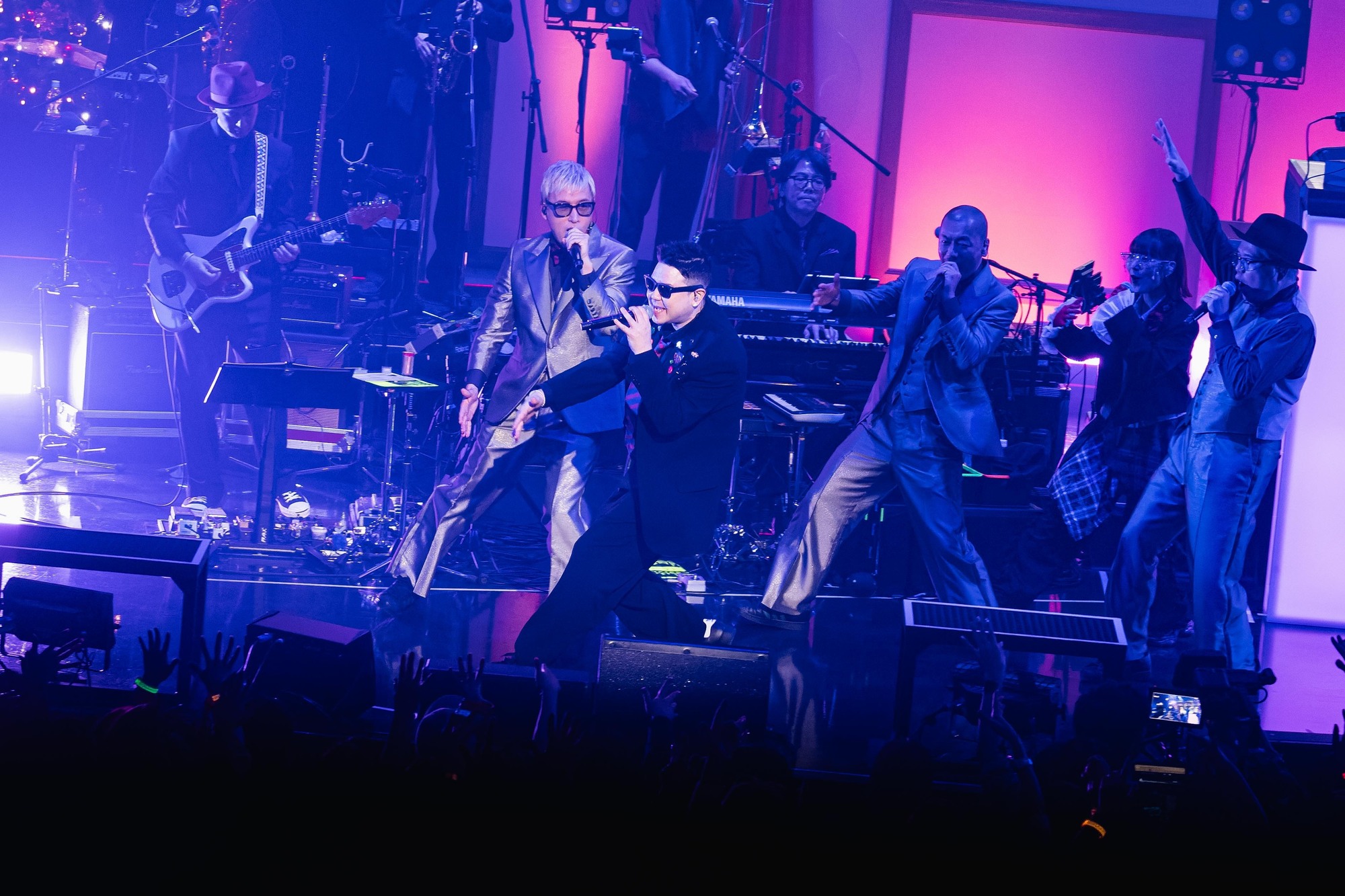 2人を迎えて演奏された「サヨナラSunset feat. WISE & おかもとえみ (RS5 Remix)」はバンド演奏による強靱なグルーヴで躍動感がアップ。続く「M・I・L・K」も低音が豊かになり、ブルージーなコクが迫力を増している。そして、このバンド演奏パートの白眉といえるのが、RYO-Zの10カウントから始まった次の「GALAXY」だった。ブラス隊がイントロを派手にブロウすると場内の空気が一変。バンド演奏でリッチになった人力ディスコビートがフロアの熱気を高めていく。