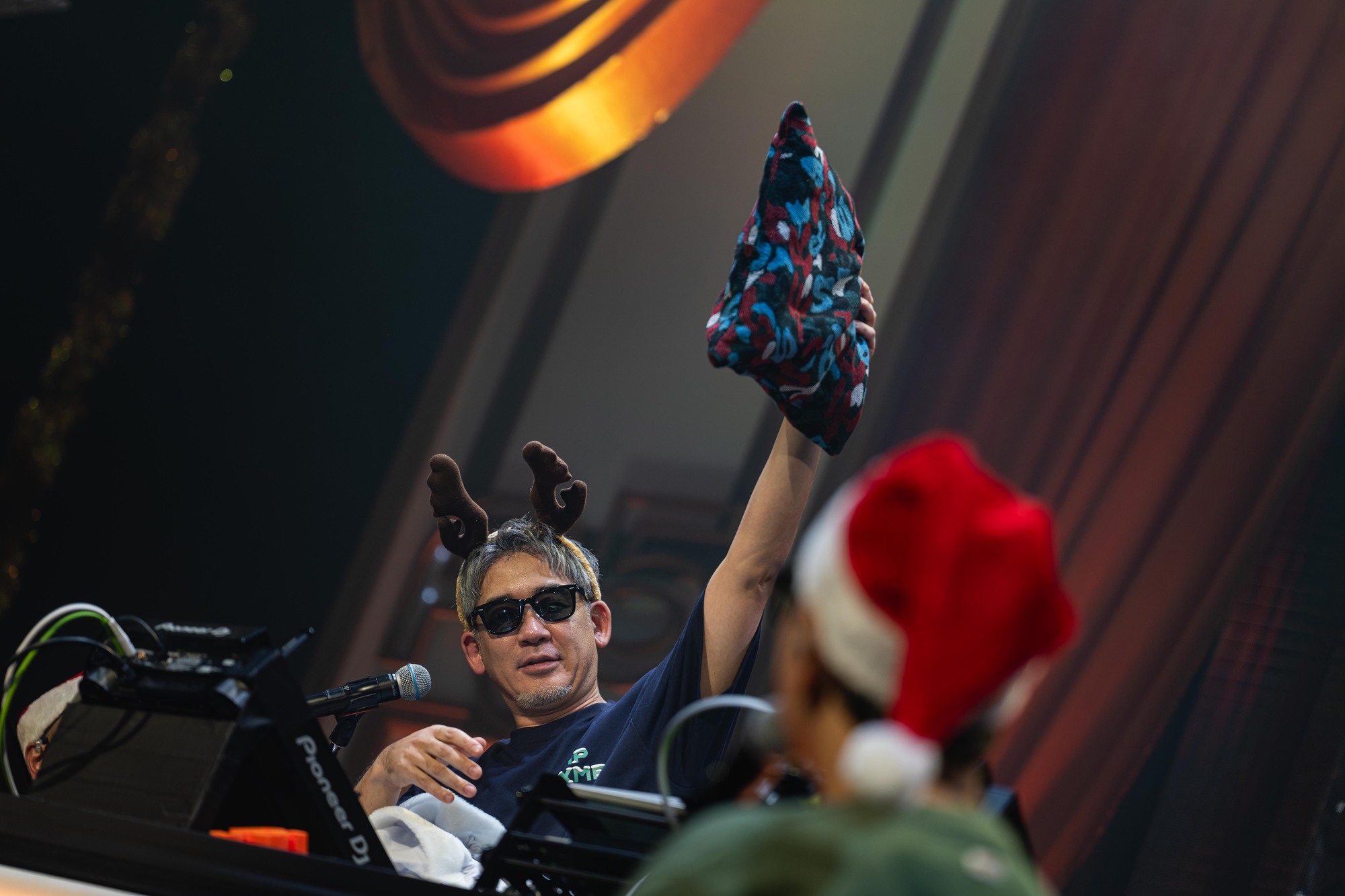熱の冷めない拍手に迎えられて始まったアンコールは、4MCが赤いサンタ帽をかぶり、FUMIYAがトナカイのカチューシャを付けて登場。FUMIYAは白いプレゼント袋も背負っていて、その中に入っているライブグッズを紹介するMCとなった。その流れからクリスマスライブ恒例の来場者へのプレゼントも発表。今回のおみやげは、足元を温めてくれるモコモコのルームシューズ a.k.a. 「スリッパーズ・ディライト」(by RYO-Z)。ちなみに初日はピンクで、2日目はペパーミントグリーン。色違いを用意するところにRIP SLYMEらしいホスピタリティが行き届いている。