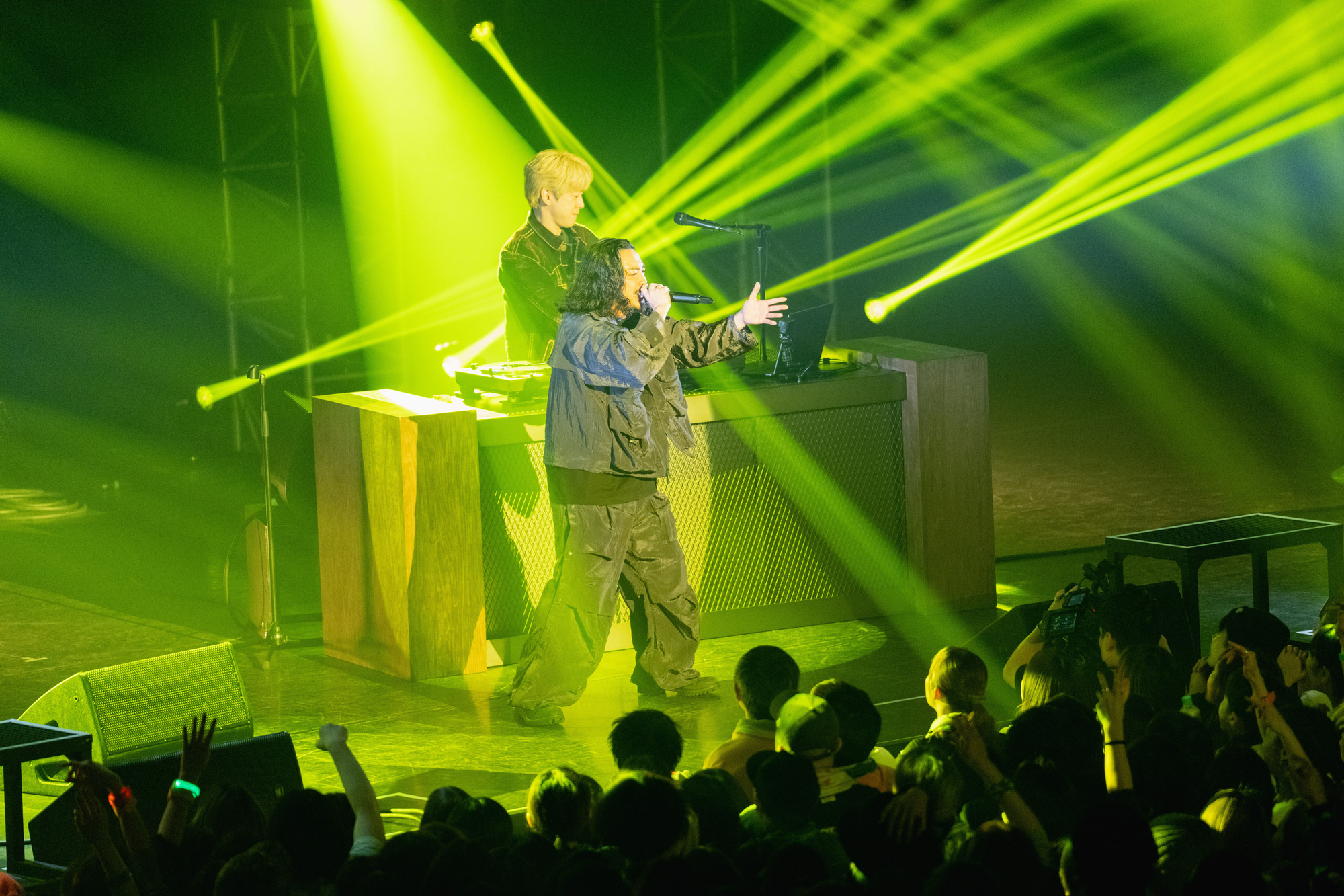 2日目に登場したのは、東京ドーム公演を成功させ、日本から世界へと射程を広げるCreepy Nuts。冒頭からフロアを一気に跳ねさせると、中盤にはDJ松永の超絶ターンテーブルルーティンへ。息を呑む高速スクラッチで会場の空気を掌握し、そのまま世界的ヒット「Bling-Bang-Bang-Born」へ雪崩れ込み、豊洲PITは大合唱に包まれた。