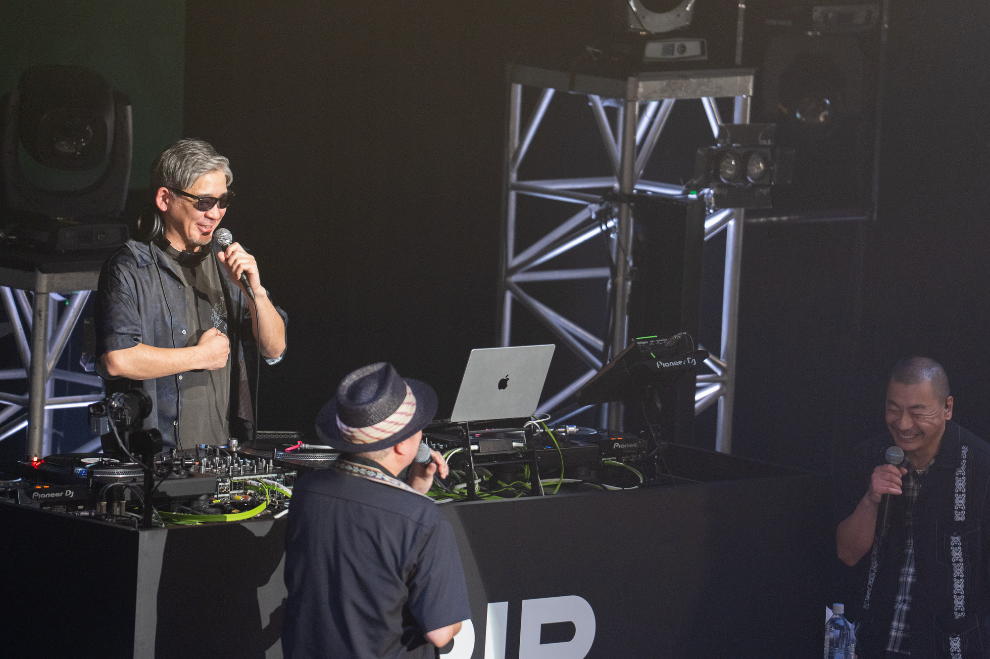 R-指定はこの日の感想を4小節のフリースタイルでキックし、そのままDJ松永のスクラッチへ。FUMIYAも応戦し、世代もスタイルも異なるDJ同士によるスクラッチ・セッションが展開された。